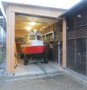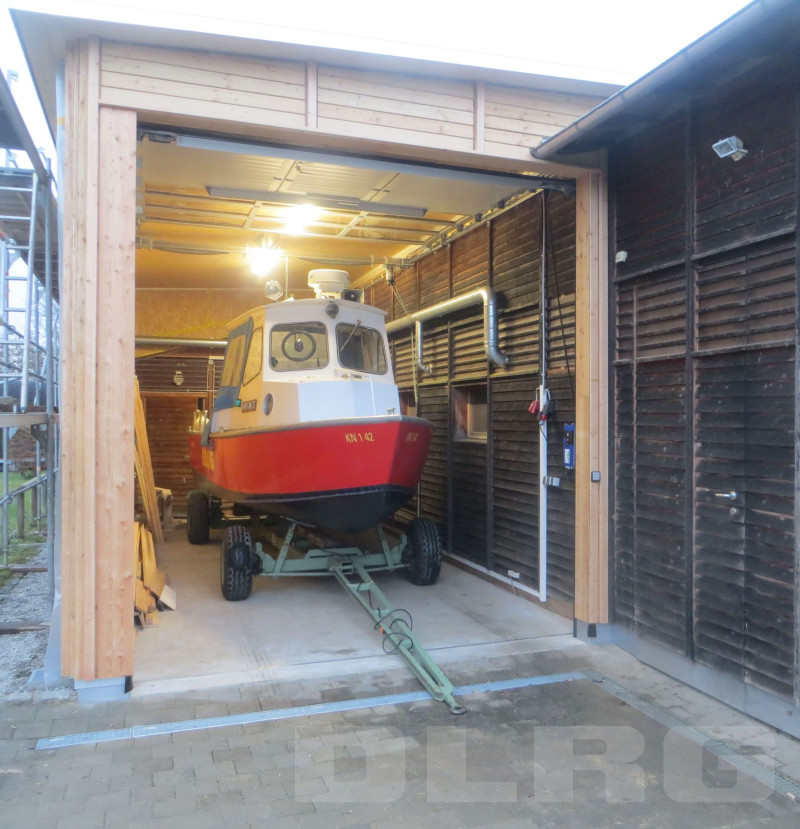Das Vereins-Jahr endet für die DLRG-Gruppe mit der erfreulichen Mitteilung, dass die neue Halle für das Gruppen-eigene Rettungsboot nach rund 2 Monaten Bauzeit – wie geplant – in den letzten Tagen vor Weihnachten fertiggestellt werden kann. Unser parallel dazu in einer Werft komplett neu gestrichene und überholte Boot kann also sein zukünftiges Winterquartier beziehen.